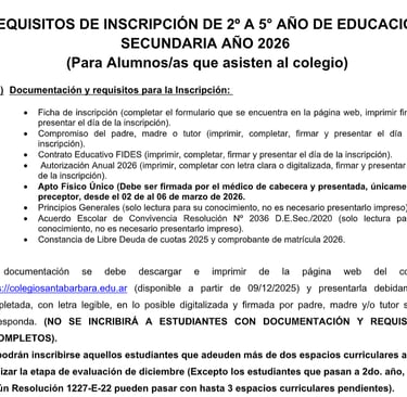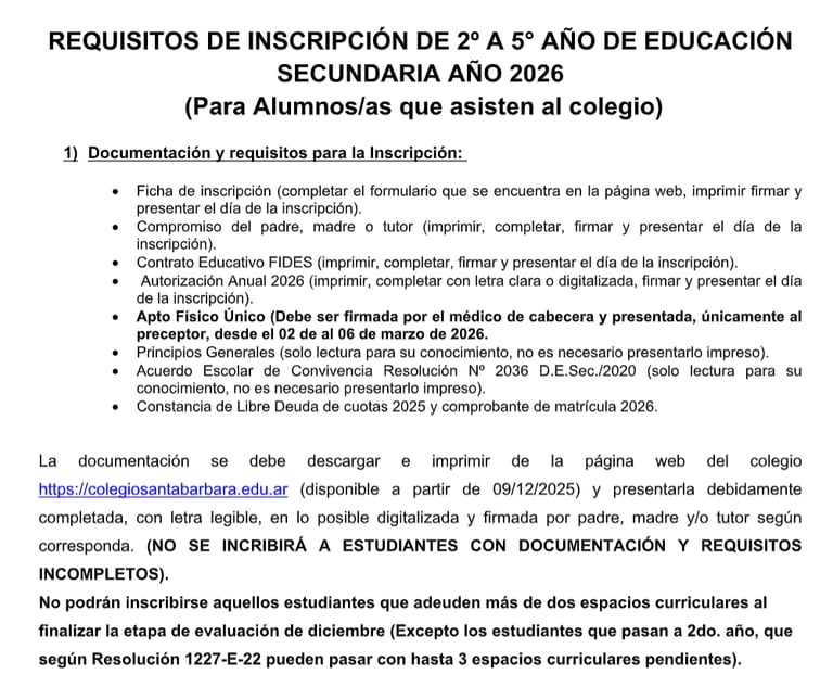 INSCRIPCIÓN DE 2º A 5° AÑO DE EDUCACIÓN SECUNDARIA AÑO 2026